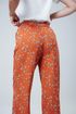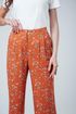 Высокая посадка, прямые с защипами, «Бутоны» штапель-твил оранж. Яркий принт, лёгкая ткань.