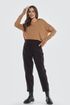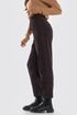 Добавьте утонченный стиль в свой гардероб с темно-коричневыми брюками "Вельвет" на высокой посадке. Эти зауженные брюки с кроем 7/8 оснащены удобно