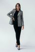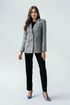 Крупная клетка «Брегенц» молочно-синий, пиджак смотрится выразительно. Лёгкая ткань не утяжеляет плечи.